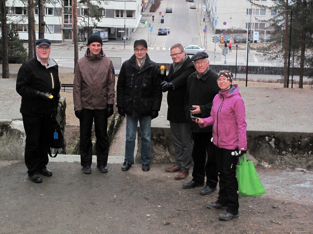 Teoriaosan jälkeen vaatteet päälle ja Harjulle hakemaan harjoituskätköjä. Ensimmäiset löytyivätkin helpohkosti, mutta kätköjen pienentyessä ja kätköjen mutkistuessa tehtiin töitä pidempään. Jokainen tunsi rajatonta riemua kätkön löytyessä. Kätköilijät havaitsivat maasto-osuuden aikana paljon ”jästejä” Harjun rinteillä harjoituskätköjä hakiessaan.